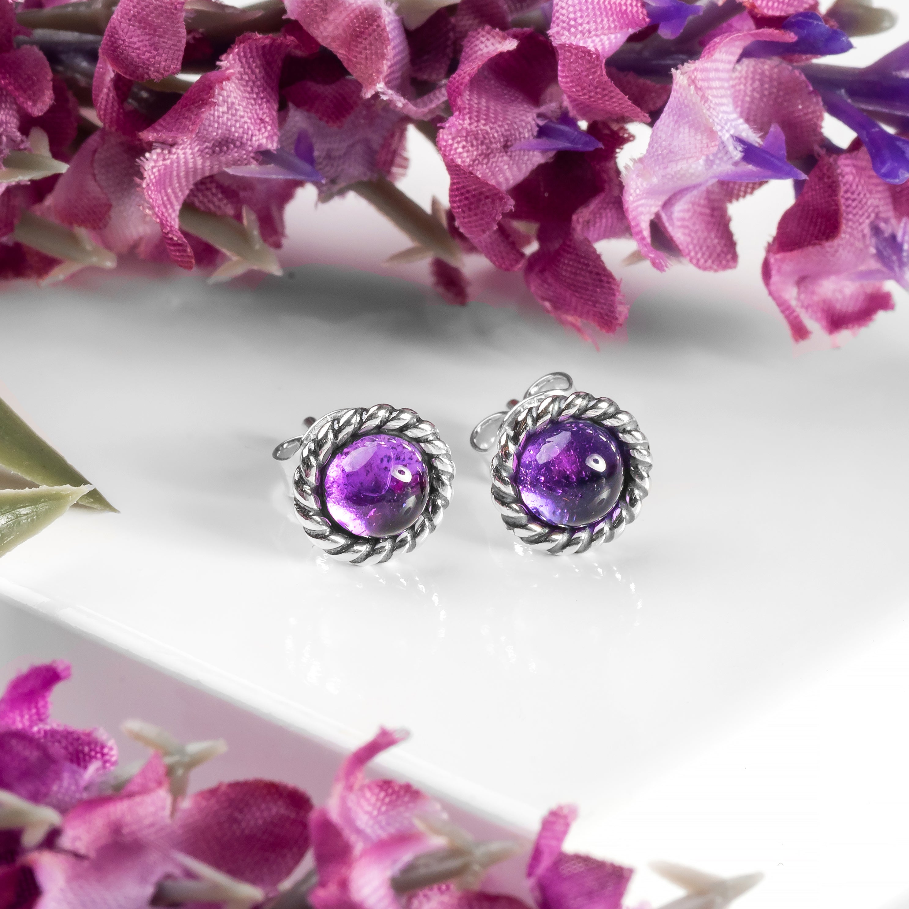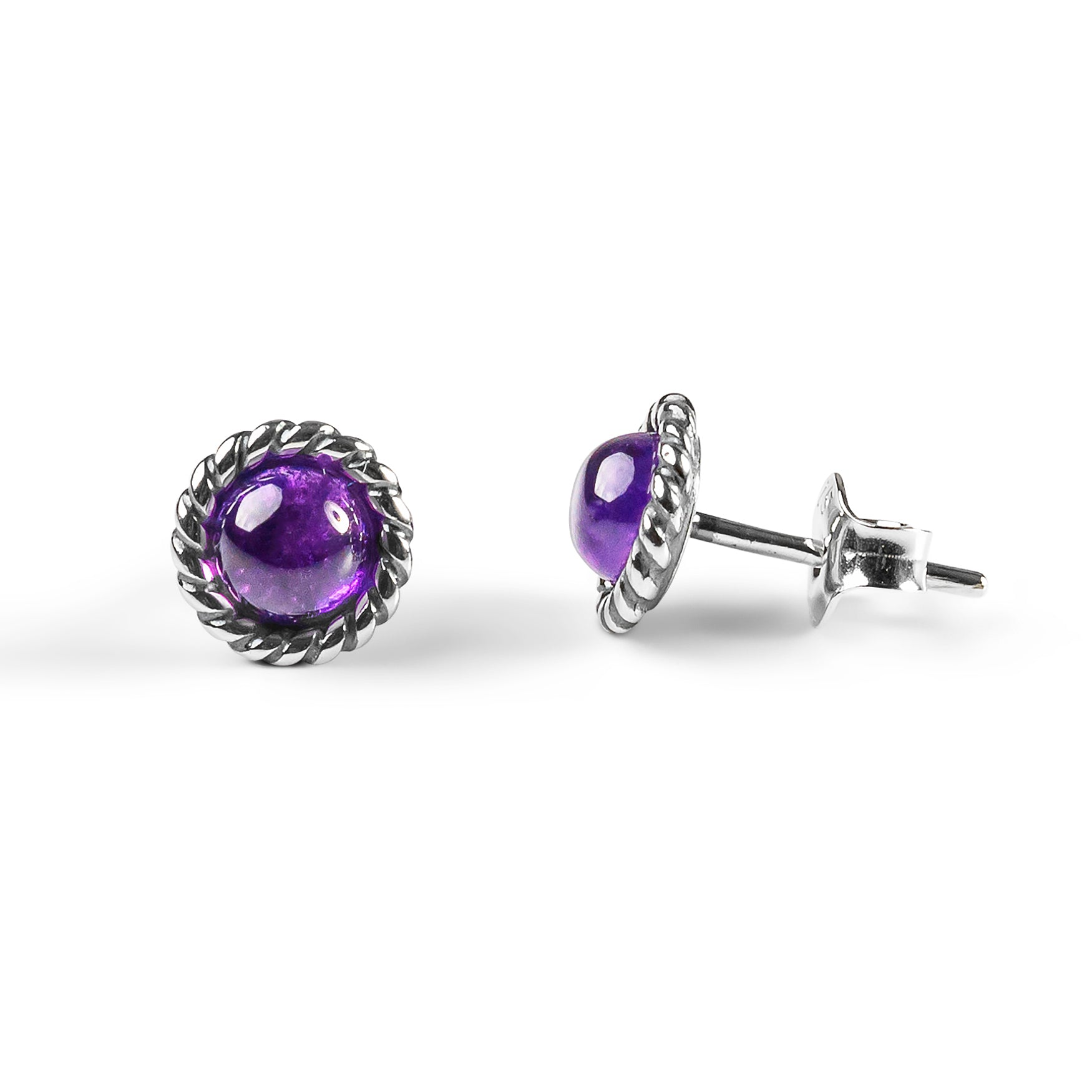 Classic and timeless Silver and Amethyst Rope Edge Stud Earrings.