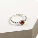 Add a splash of colour to your repertoire with our Silver and Amber Round Charm Bead Ring.