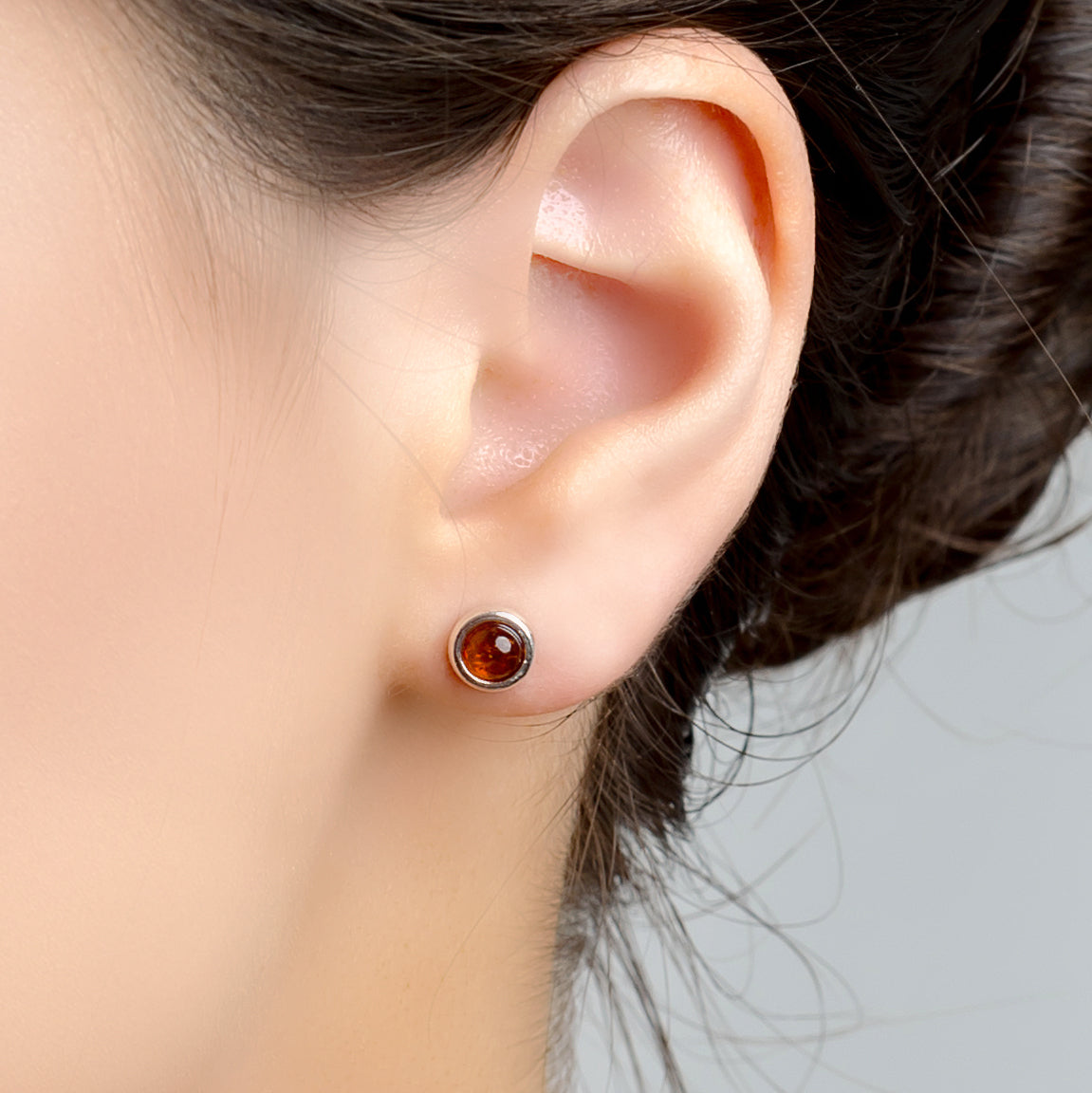 Silver and Amber Small Round Stud Earrings are perfect for achieving casual everyday style.