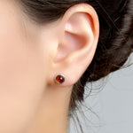 Each earring has a single round genuine Baltic Amber gemstone which has been set into solid 925 silver. Complete with a stem post and butterfly back for easy and secure wearing.