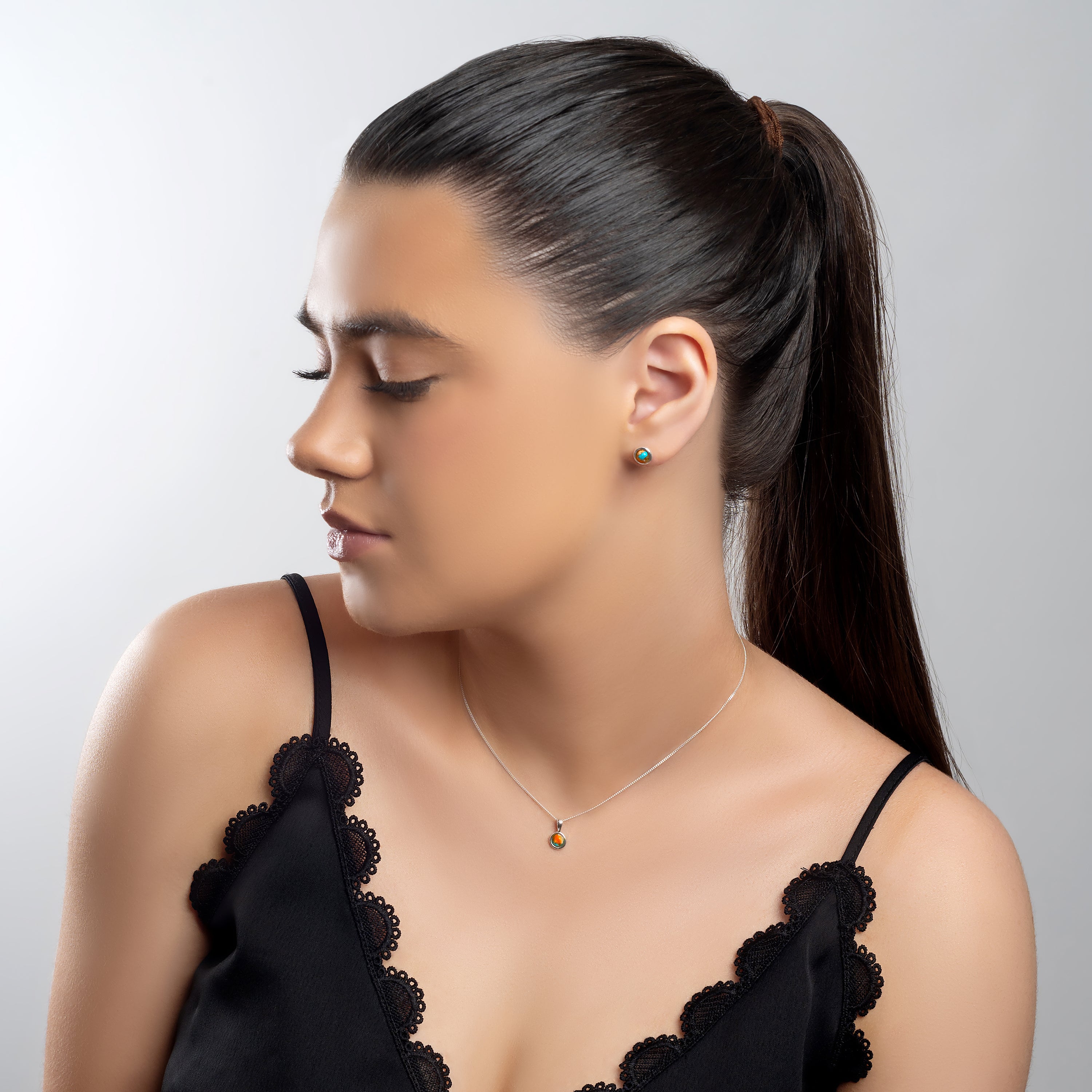 Small Round Stud Earrings in Silver and Copper Turquoise