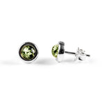 Silver and Green Amber Small Round Stud Earrings are perfect for achieving casual everyday style.