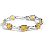 Square Link Bracelet in Silver and Amber