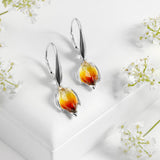Sunset Amber Flower Bud Drop Earrings Silver and Amber