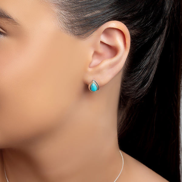 Classic Teardrop Stud Earrings in Silver and Turquoise