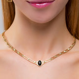 Made with sterling silver and finished in 24ct gold plating, this necklace features a natural Black Onyx gemstone at the centre for a touch of elegance. Perfect for any special occasion, elevate your style and take a bold risk with this stunning piece.