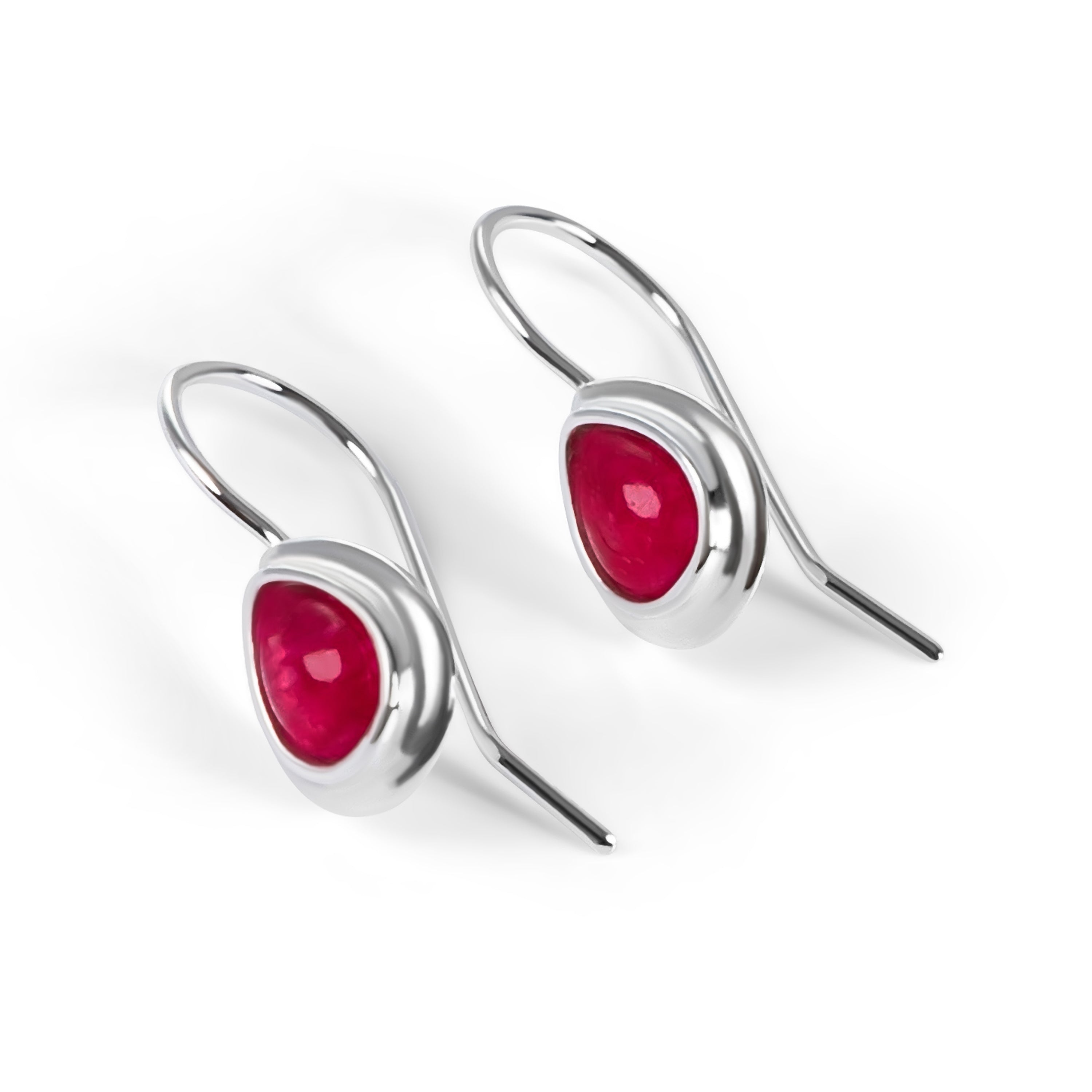 Classic Teardrop Hook Earrings in Silver with 24ct Gold & Ruby