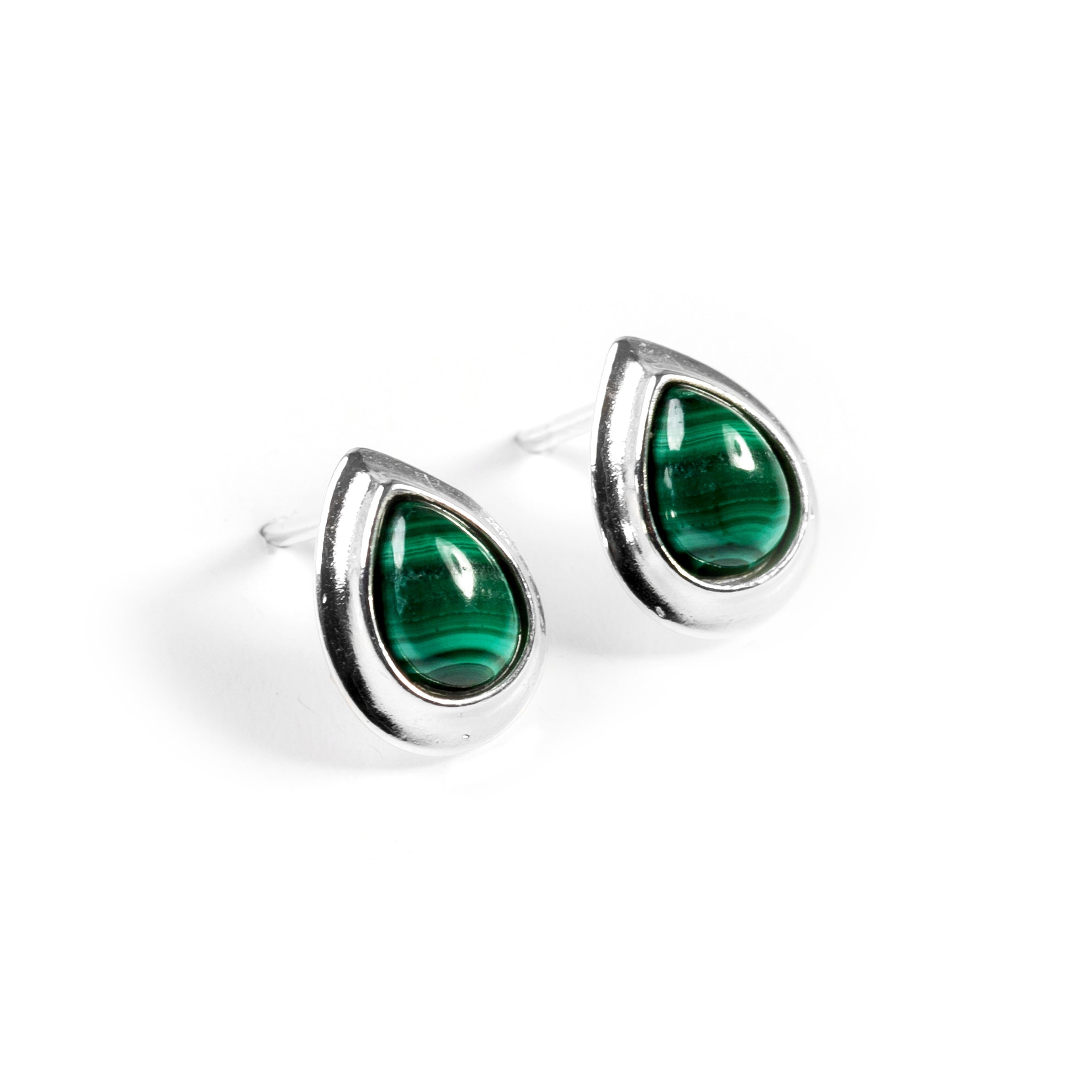 Classic Teardrop Stud Earrings in Silver and Malachite