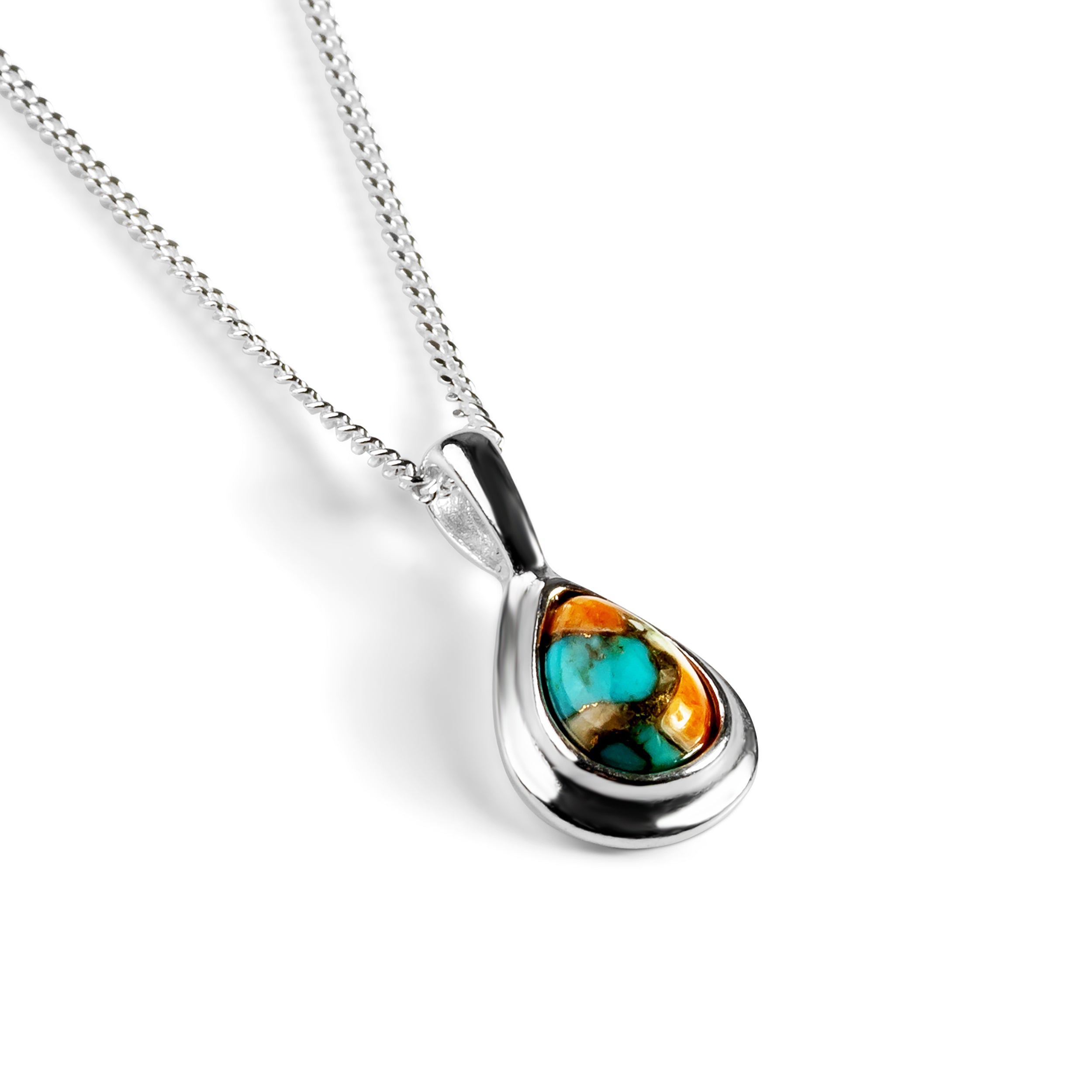 Classic Teardrop Necklace in Silver and Oyster Copper Turquoise