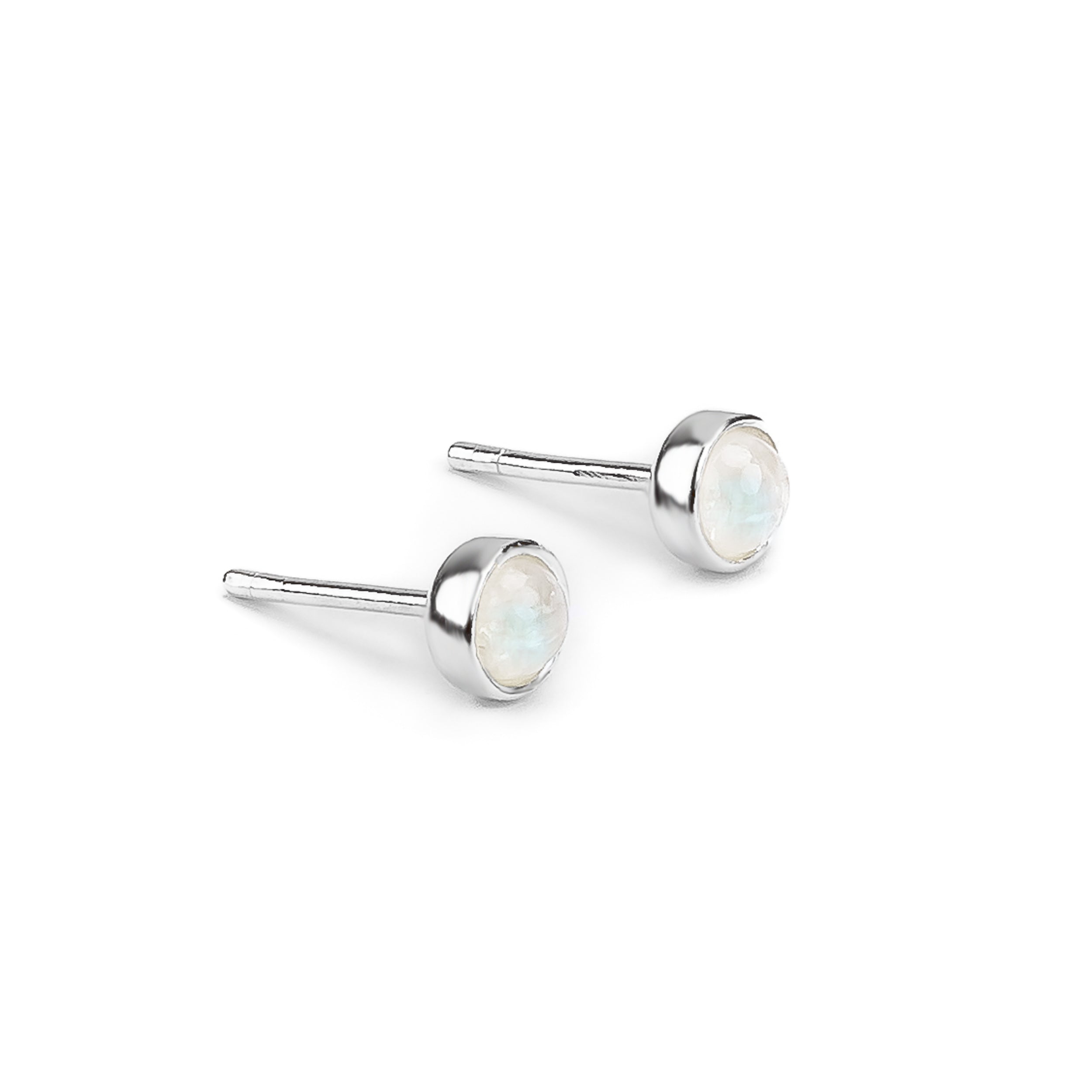 Minimalist Circle Stud Earrings in Silver and Moonstone