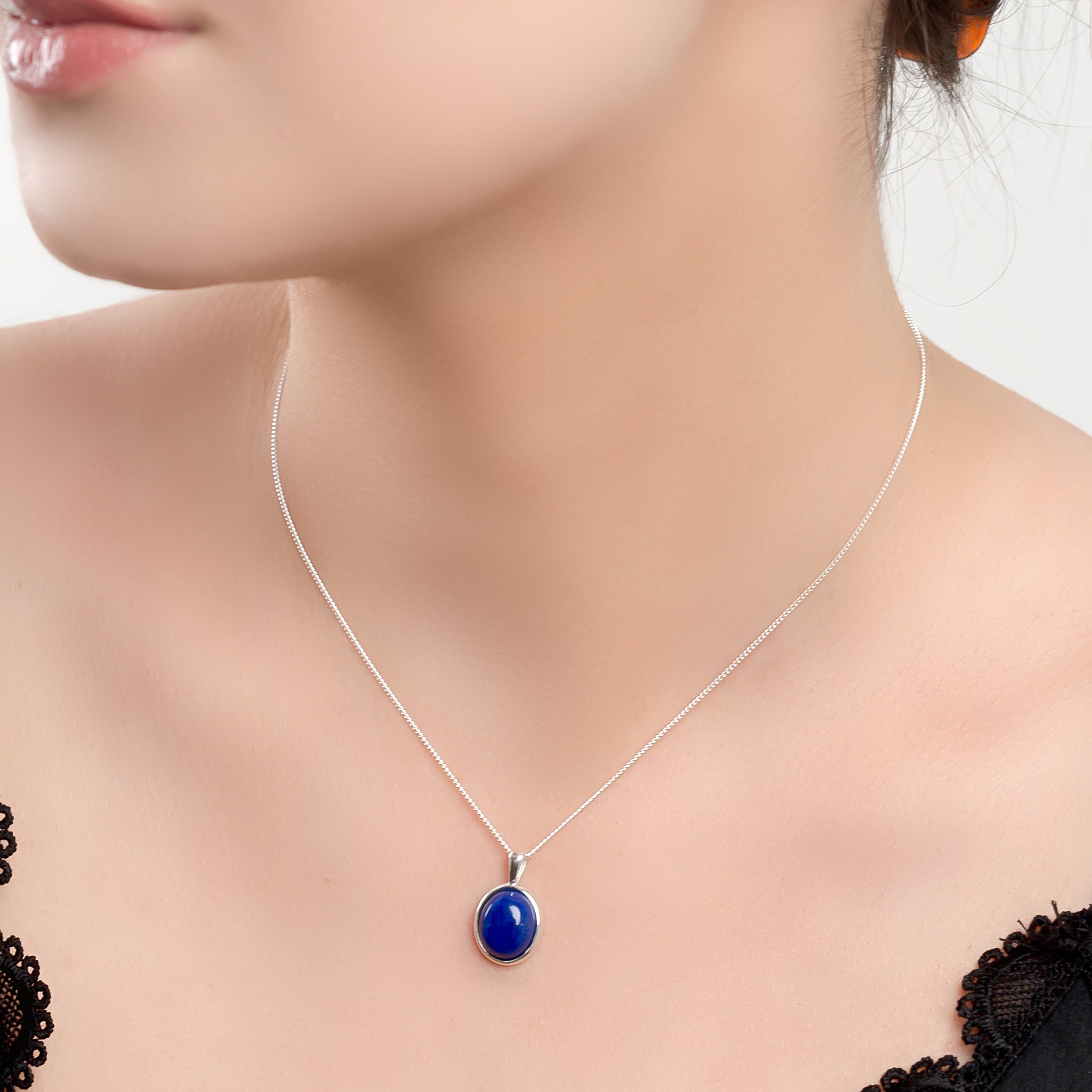 Classic Oval Necklace in Silver and Lapis Lazuli