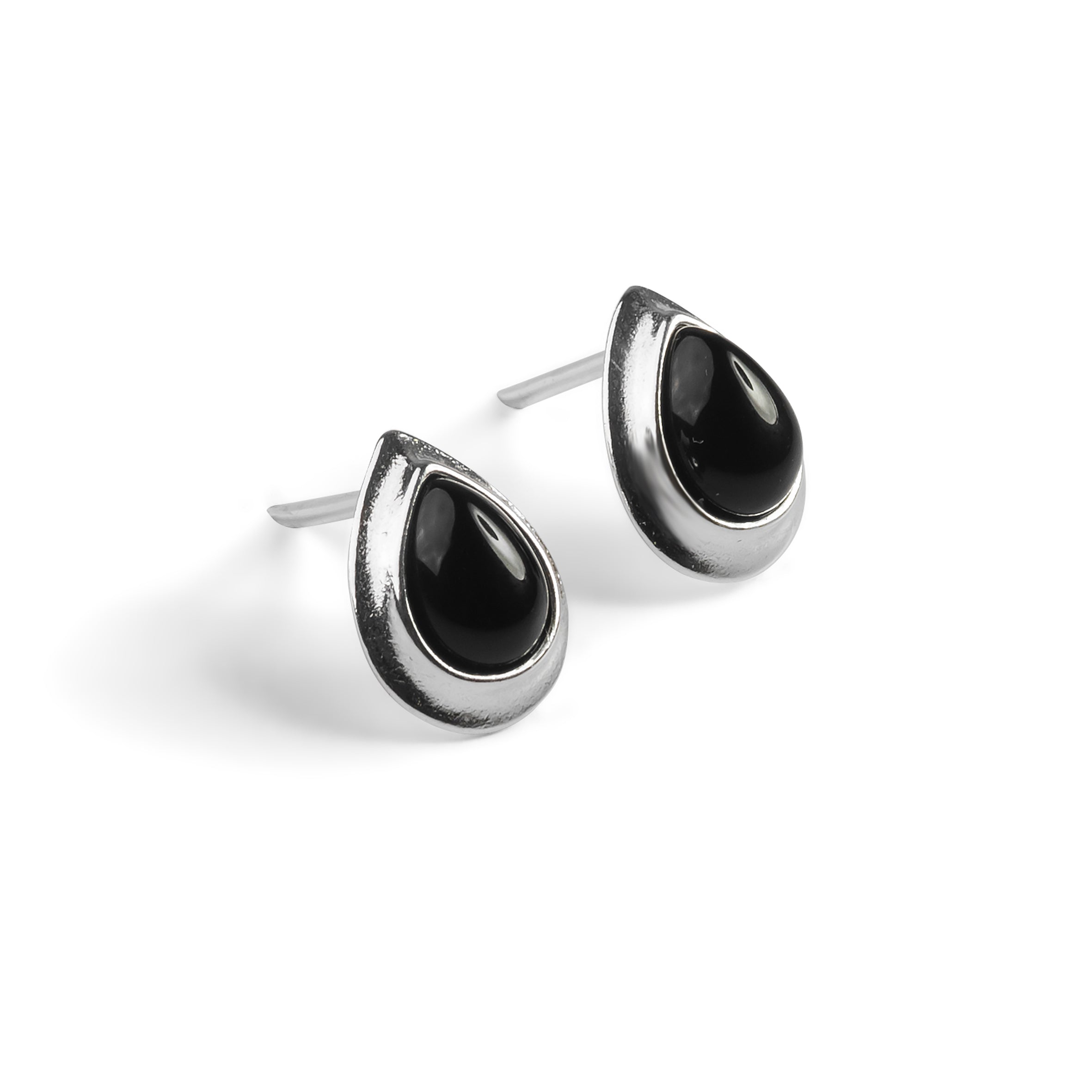 Classic Teardrop Stud Earrings in Silver and Black Onyx