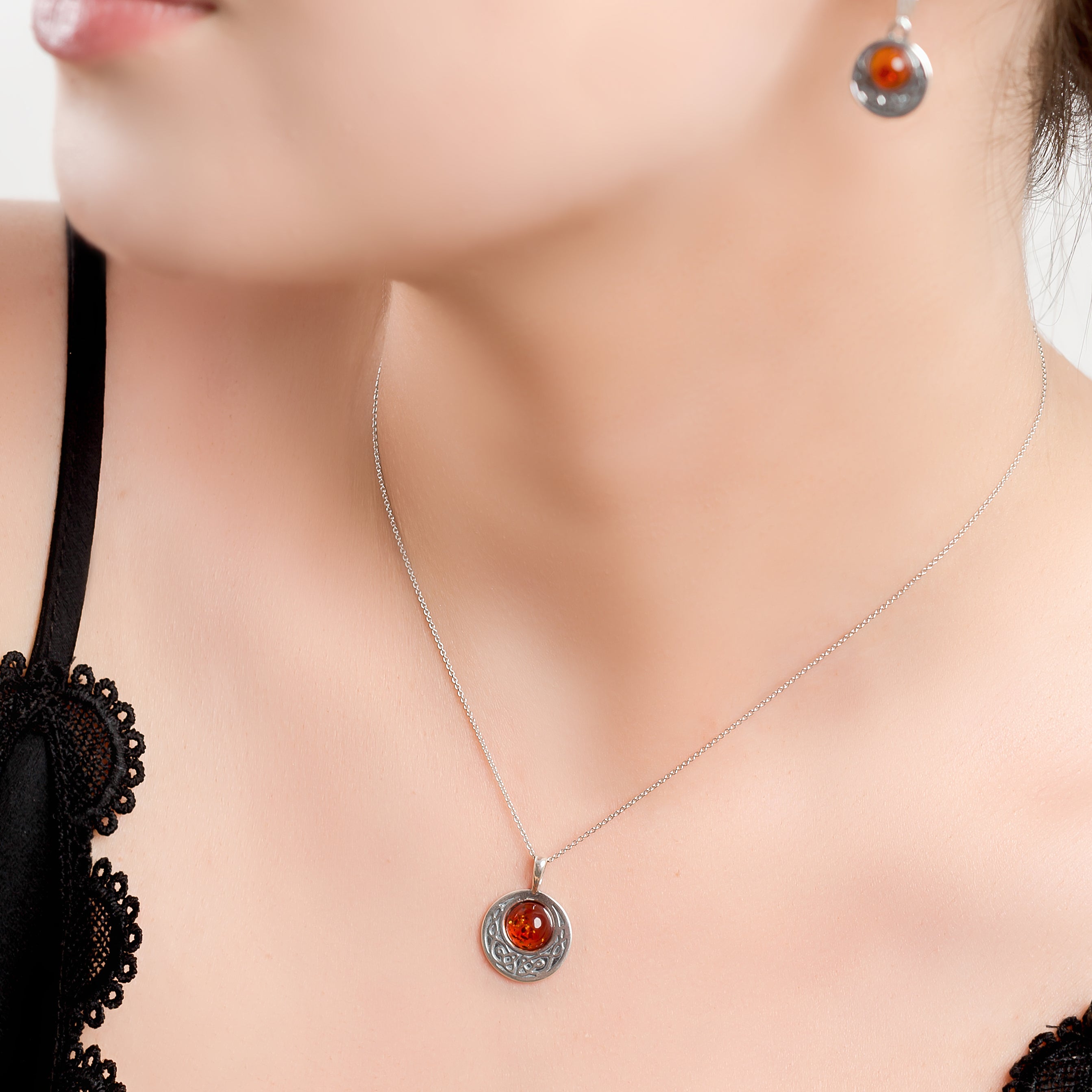 Small Kingfisher Bird Necklace in Silver, Turquoise and Amber