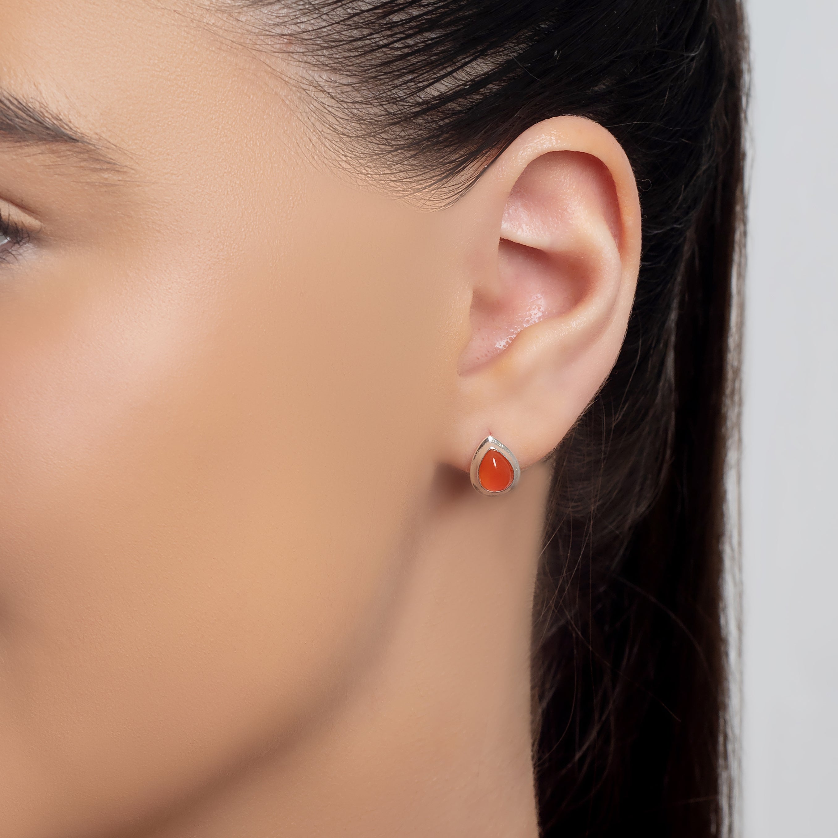 Classic Teardrop Stud Earrings in Silver and Carnelian