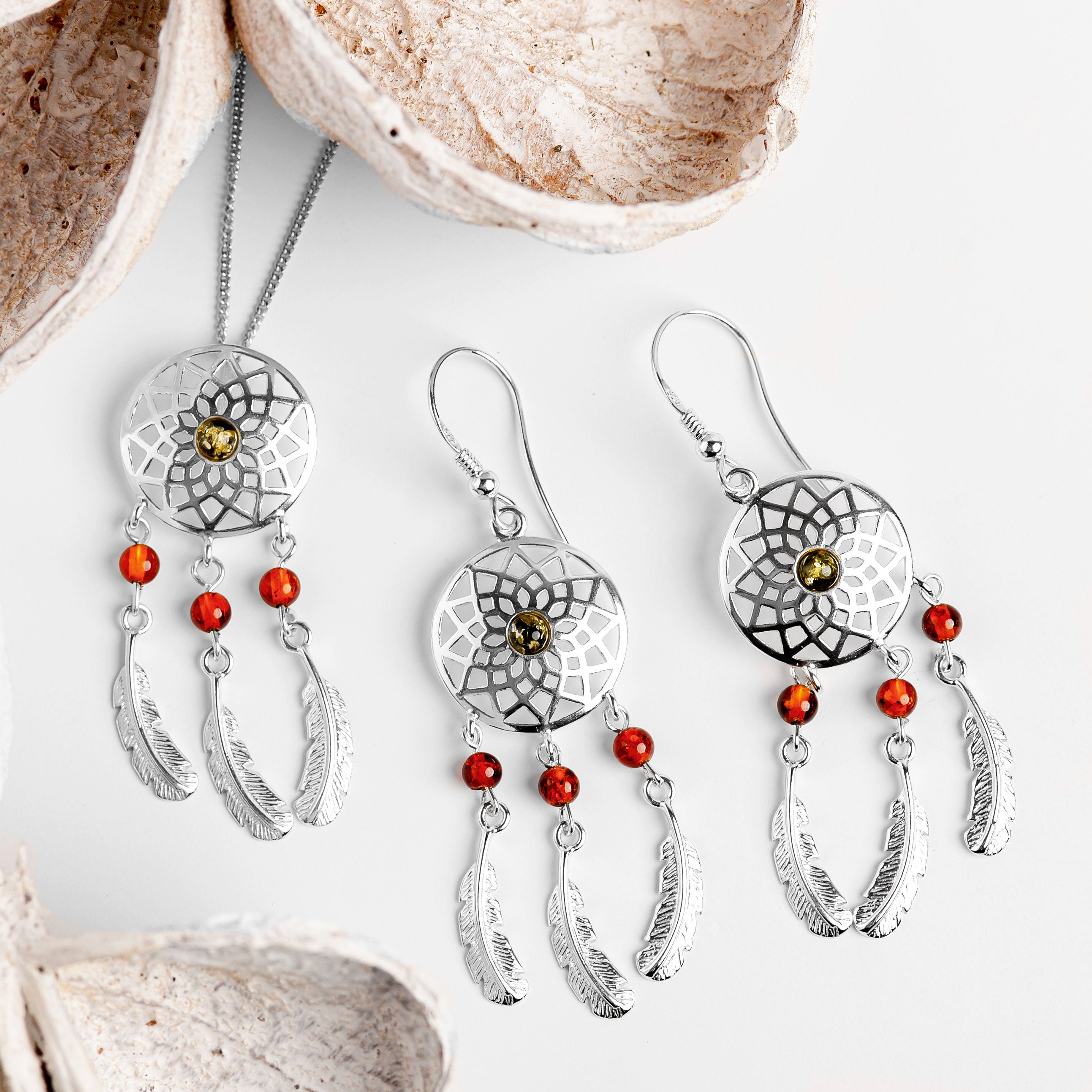 Unleash your boho queen with our Silver and Amber Dreamcatcher Earrings.
