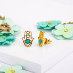 Hamsa Hand Stud Earrings in Silver with 24ct Gold & Turquoise