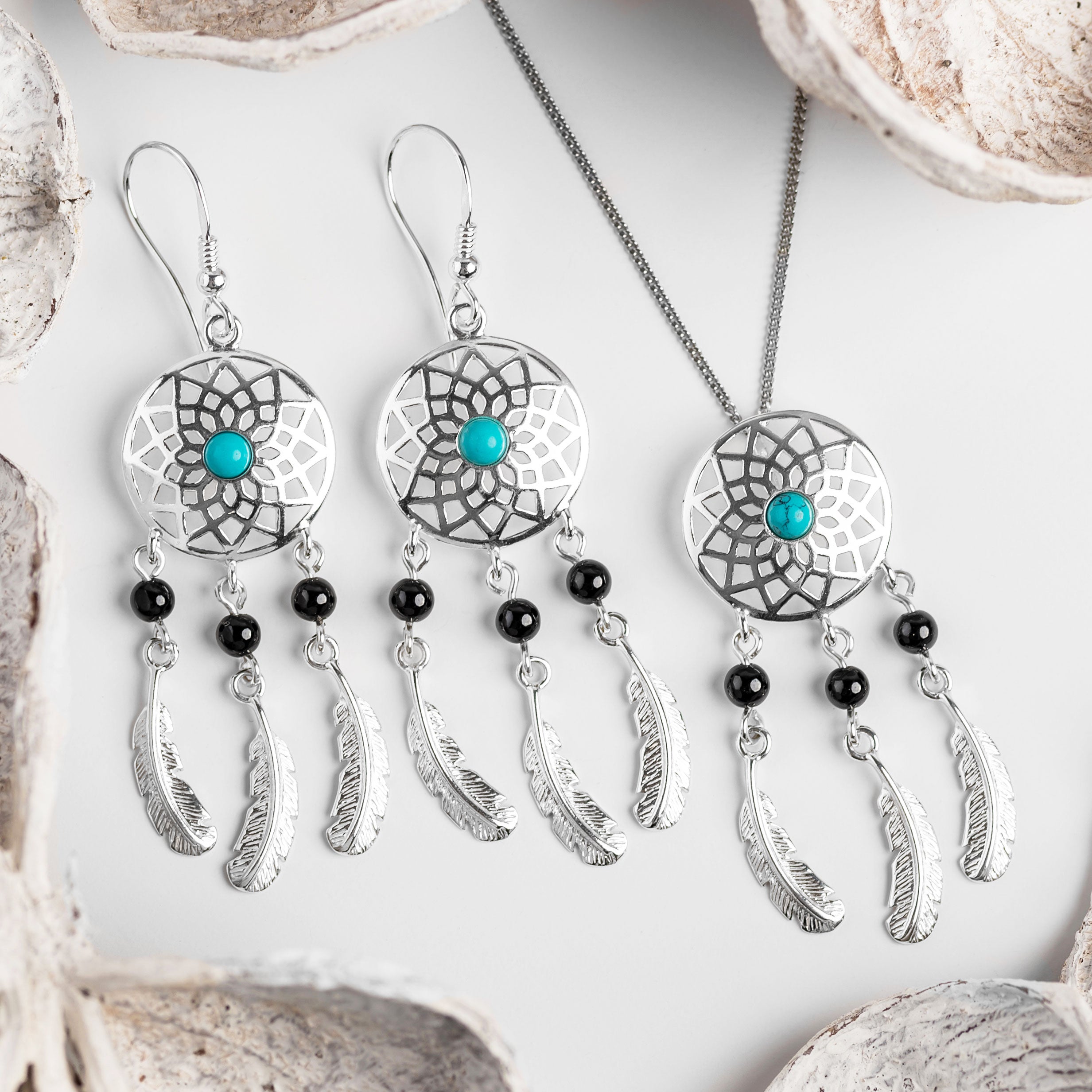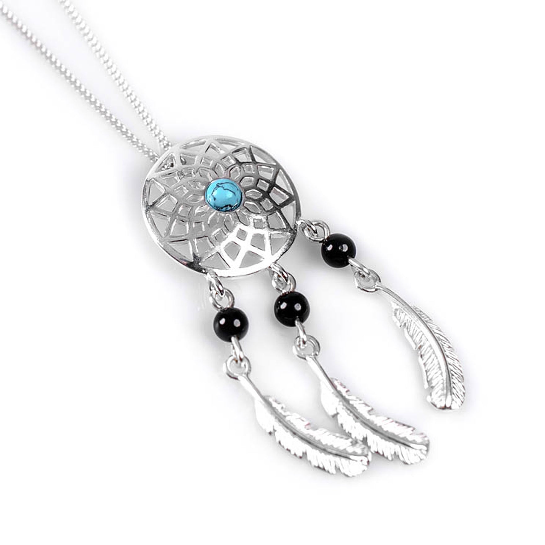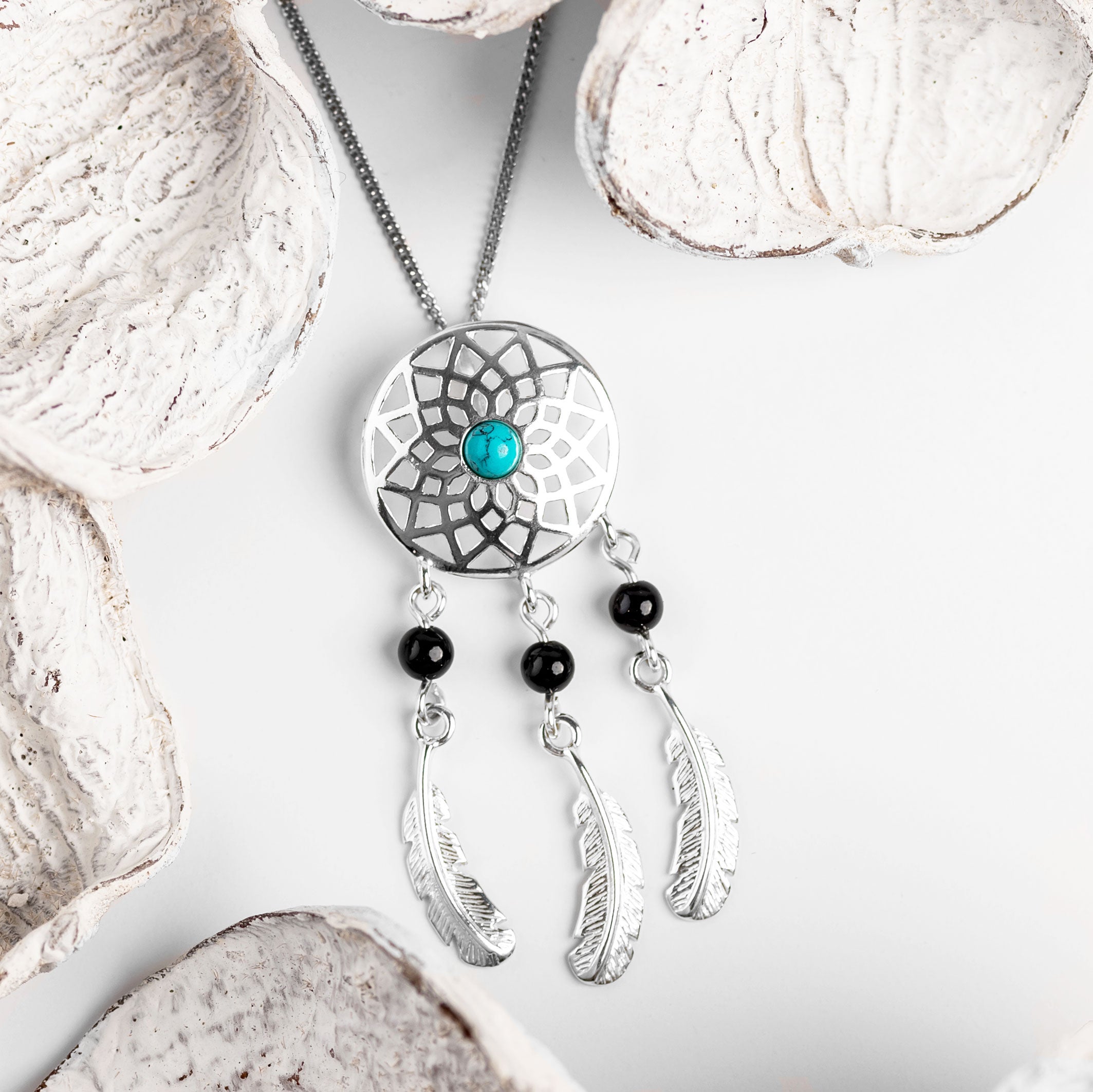 Dreamcatcher Necklace in Silver, Turquoise and Onyx