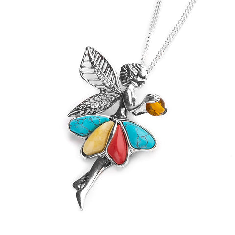 Small Kingfisher Bird Necklace in Silver, Turquoise and Amber