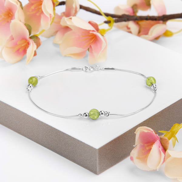 Effortlessly stylish Silver and Peridot Bead Bracelet.