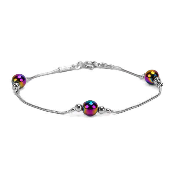 Effortlessly stylish Silver and Rainbow Titanium Bead Bracelet.