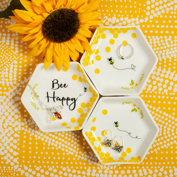 Introducing our beautiful 'Bee Happy' Trio of Jewellery Trinket Dishes.