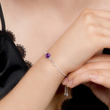 Crafted in 925 Sterling Silver, this bracelet has a intricate Celtic knot design which is embellished with a single round natural Amethyst gemstone in the centre. With a secure silver rope chain which has an adjustable slider so the bracelet is easy to put on and take off.
