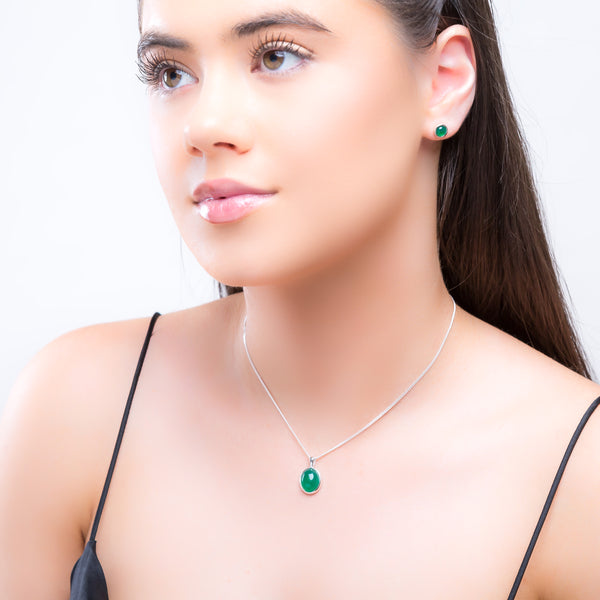 Chic and sophisticated, this Classic Silver and Green Onyx Oval Necklace is inspired our love of minimalist styles.