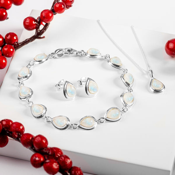 Add sophisticated style to your look with our Silver & Moonstone Teardrop Link Bracelet.