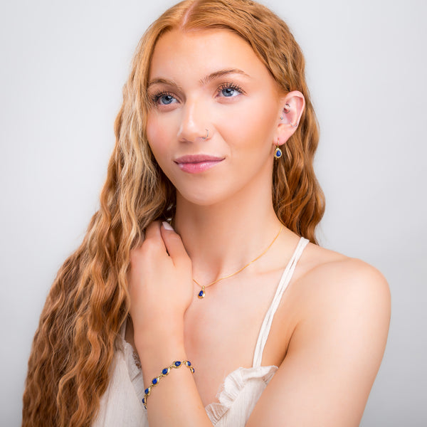 Add sophisticated style to your look with our Silver & Lapis Lazuli Teardrop Link Bracelet.