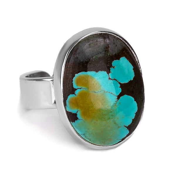 This exquisite statement ring features a genuine Tibetan Turquoise gemstone, carefully sourced from the remote Himalayas.