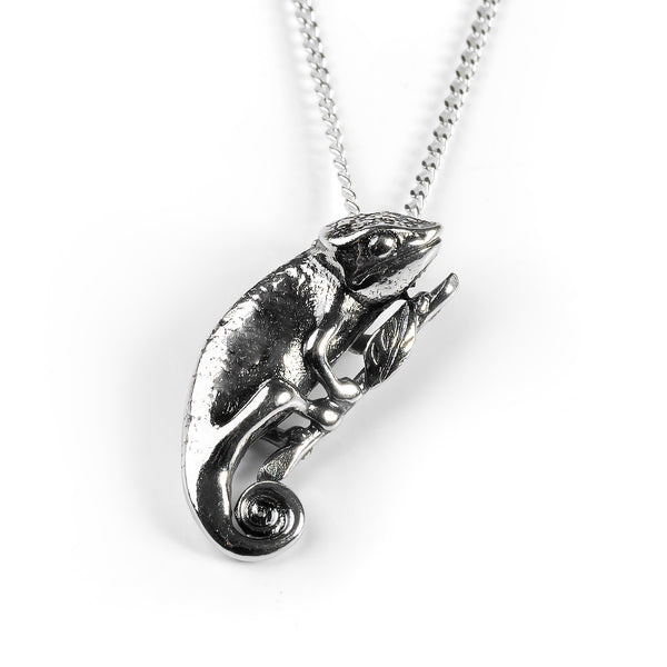 Handmade in 925 sterling silver with 24ct Gold plating, the pendant is a carefully designed 3D Chameleon which appears to be climbing up the small tree branch. Full of intricate detailing to showcase all the famous attributes including their curled tail and distinctive eyes. Complete with a solid silver chain.