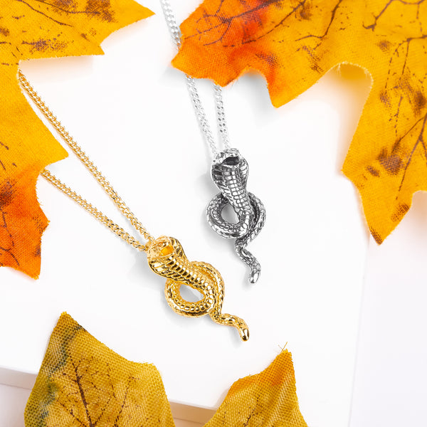 Handcrafted in 925 sterling silver with 24ct Gold plating, this 3 dimensional pendant is full of detail. With its striking famous hood, scaled skin and menacing eyes, it is instantly recognisable creature. Complete with a silver gold plated chain, it will it both stylish and unique.