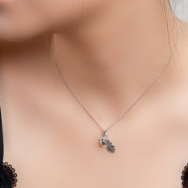 Remember autumn days with our Silver Acorn and Oak Leaf Necklace.