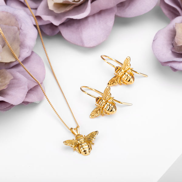 Cute Honey Bee Necklace in Silver with 24ct Gold