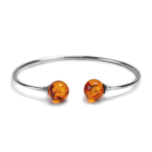 Simple and sophisticated Silver and Amber Double Ball Cuff Bangle will complete your jewellery collection.