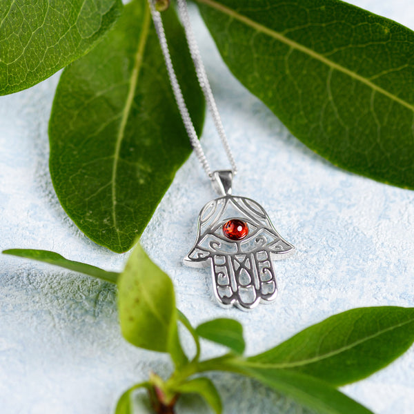 Delicately crafted in 925 silver with a genuine Baltic Amber gemstone at the centre, this necklace is both meaningful and on-trend. Finished with a solid silver chain.