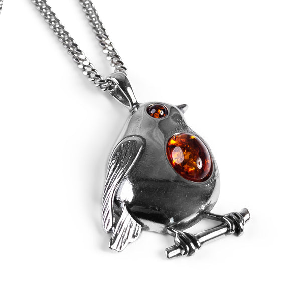 Handcrafted in 925 silver and adorned with a warm toned genuine Baltic Amber gemstone breast and a dazzling Cherry Amber gemstone eye, this will make a treasured gift for any bird lover. Complete with a solid silver chain, it can be comfortably worn all day, every day.