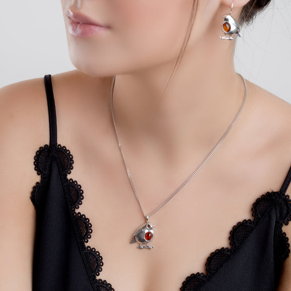 Adorable chubby Silver and Amber Large Robin Necklace will make you feel festive all year round.