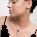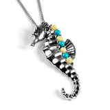 Large Seahorse Necklace in Silver, Turquoise and Amber