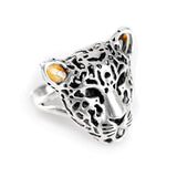 Adorn your finger with our Silver and Amber Magnificent Leopard Head Ring.