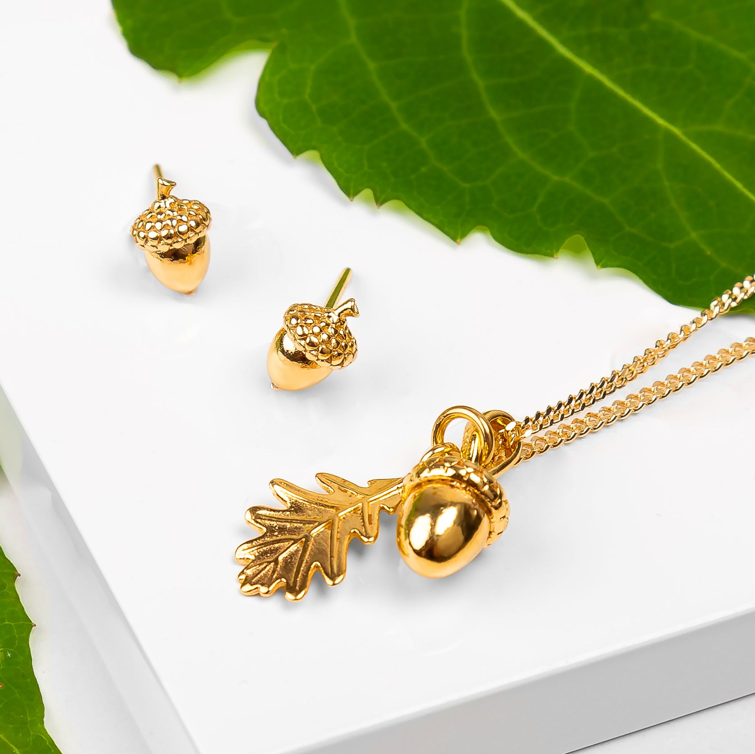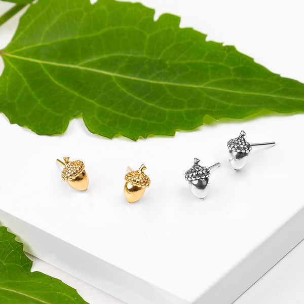 Handcrafted in 925 Sterling Silver and finished with 24ct Gold plating, each earring is highly detailed with etching on the acorn cap. Complete with a solid silver stem and butterfly back, they are perfect for all ages!