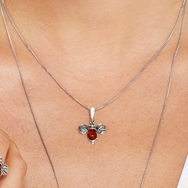 Crafted in 925 silver and adorned with a genuine Baltic Amber gemstone body, this necklace is detailed with all the classic characters of these pollinators. With rounded wings and tiny stinger, this small but mighty creature is full of life. Complete with a solid silver chain, it can be worn solo or layer with your favourite pieces for a stylish look.