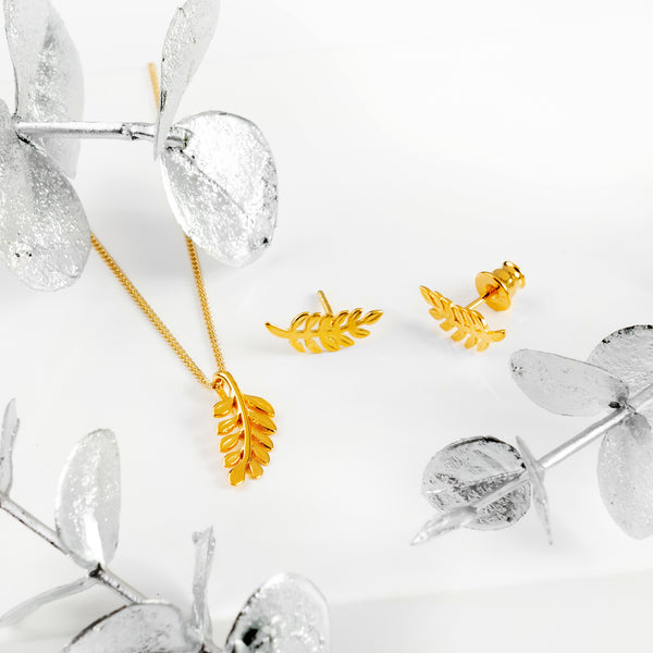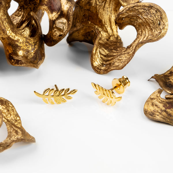 Miniature Royal Fern Leaf Stud Earrings in Silver with 24ct Gold
