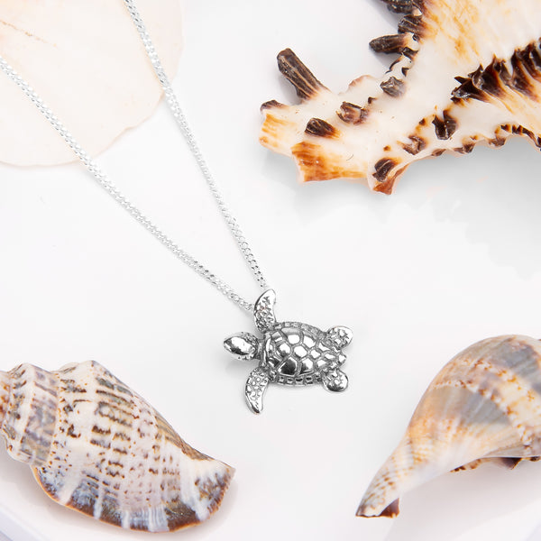 Crafted in 925 Sterling Silver this adorable necklace showcasing all the best attributes of the Turtle. From its detailed shell to its playful flippers you'll find it hard not to fall in love with. Complete with a solid silver chain.