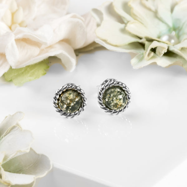 Classic and timeless Silver and Amber Rope Edge Stud Earrings.