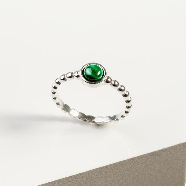 Crafted in solid 925 silver with a carefully designed beaded band. All lovingly finished with a gorgeous natural Malachite gemstone.