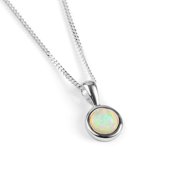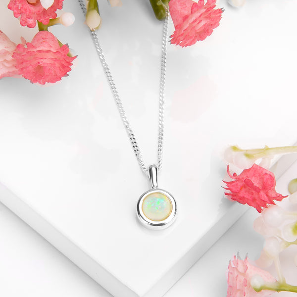 Crafted in 925 silver, with a natural shimmering Ethiopian Opal gemstone rounded charm, this necklace is perfect for achieving a 'layered look' or for those who prefer something dainty for everyday wearing.