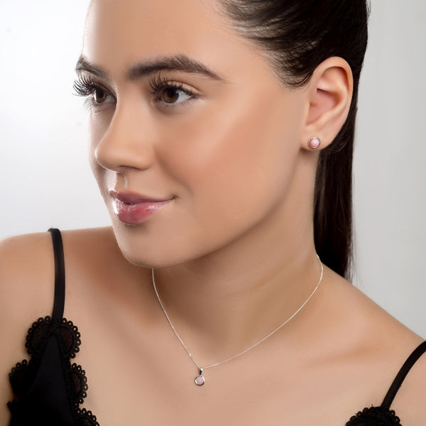 Feel pretty in pink with our Silver and Pink Opal Round Charm Necklace.