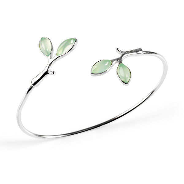 Simple Olive Leaf Branch Bangle in Silver and Prehnite