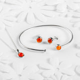 Each earring has a single round orange Carnelian gemstone which has been set into solid 925 silver. Complete with a stem post and butterfly back for easy and secure wearing.